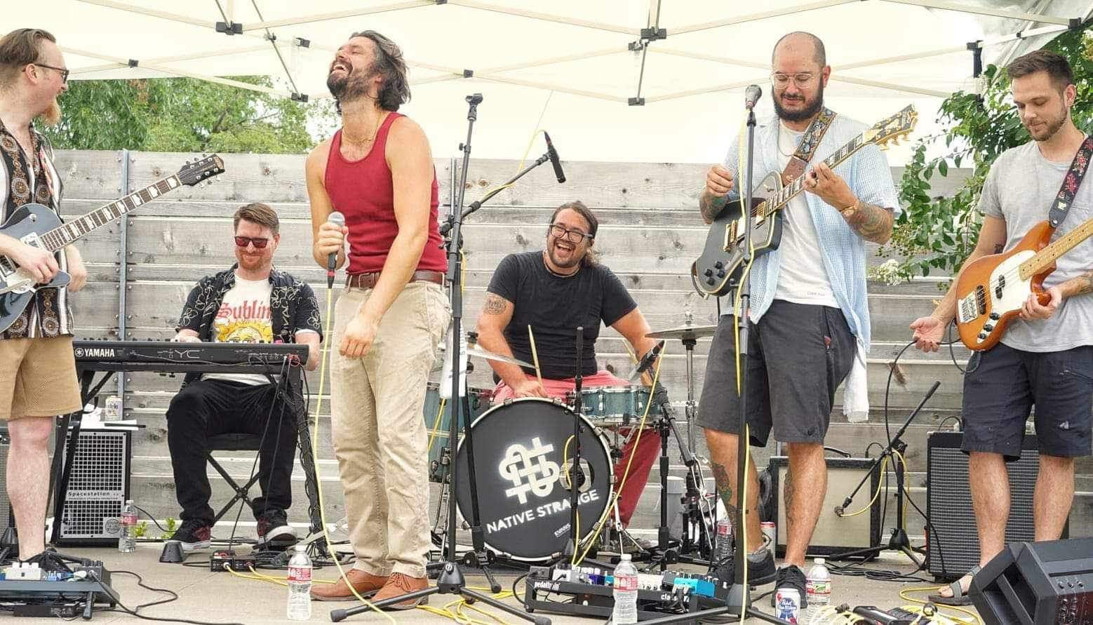 Today, the band also features Christian Curtis (bass), Brenden Curtis (lead guitar), Jorge Sepulveda (rhythm guitar), Chris Reynolds (keys), and Nathan Wilson (drums). All of the members are from the Tulsa area, except Jorge, who moved from California to Tulsa. While he initially joked about expecting tumbleweeds and horses, he was quickly won over by the city’s character and the genuine kindness of the people he met. He eventually found his way into the local music scene and is now a key part of the Native Strange crew. His arrival helped solidify the band’s transition from a rotating hodgepodge of musicians into the ensemble it is today.