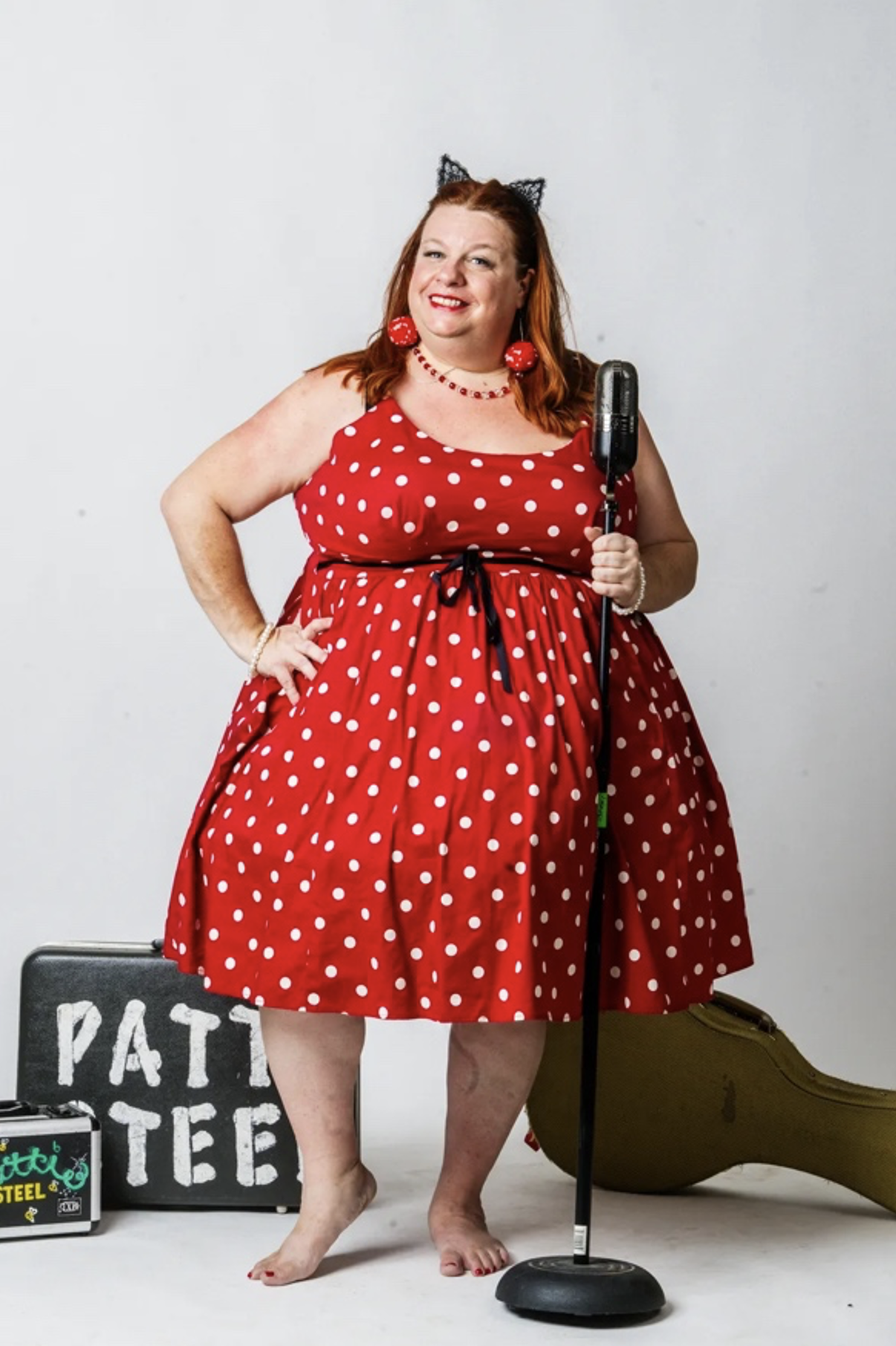 There have been a few iterations of the Patti Steel Band. She writes and performs a lot of original songs. One is called “Catchin’ My Back Hand,” which speaks to the struggle of being in an abusive relationship—feeling trapped, believing you can’t get away, and then realizing you actually can. Another original, “No Better,” calls out people who act like they’re above others when, in truth, they’re not better at all. Some of the cover songs she performs with her band include music by The Staple Singers, Alabama Shakes, and Led Zeppelin—artists whose power and soul have deeply influenced her sound. She’s been writing new material and has a new album.